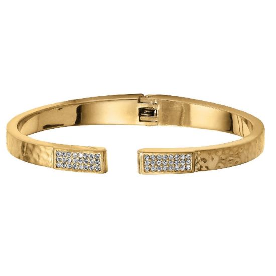 Our popular Meridian Collection barrel silhouette is unrolled and geometrically updated on this hammered hinged bangle. It's the very zenith of contemporary chic, and great for stacking.