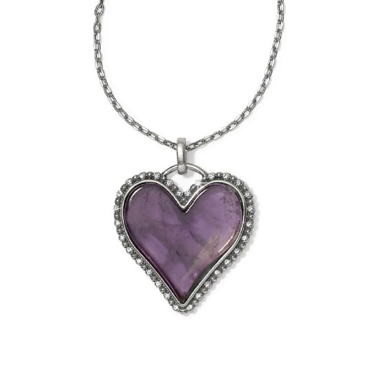 A clean and elegant heart silhouette is the perfect addition to your wardrobe, stylish on its own or layered with other pieces. Amethyst is said to symbolize contentment.