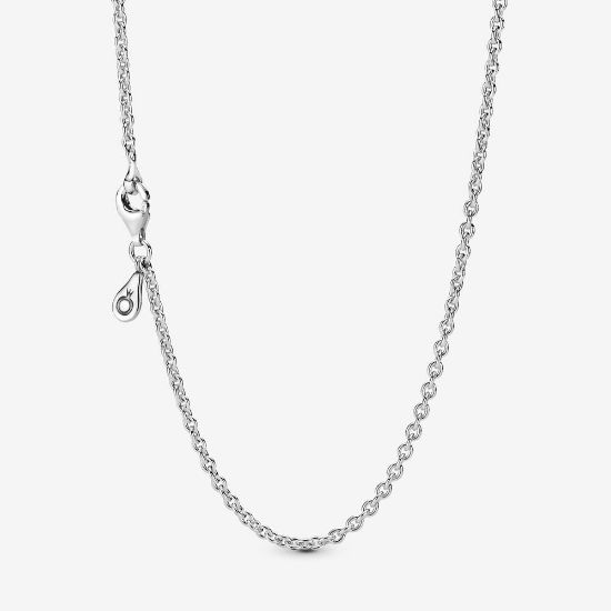 Create a look that's uniquely you, using this classic chain as the starting point. The versatile necklace is cast in sterling silver. It's minimally detailed with a Pandora logo tag and a lobster clasp. Whether you want to do simple, wear a statement or play with texture and size, it's an easy way to update your neckline. Add your edit of pendants or charms and adjust it to one of the two lengths for the perfect drop.